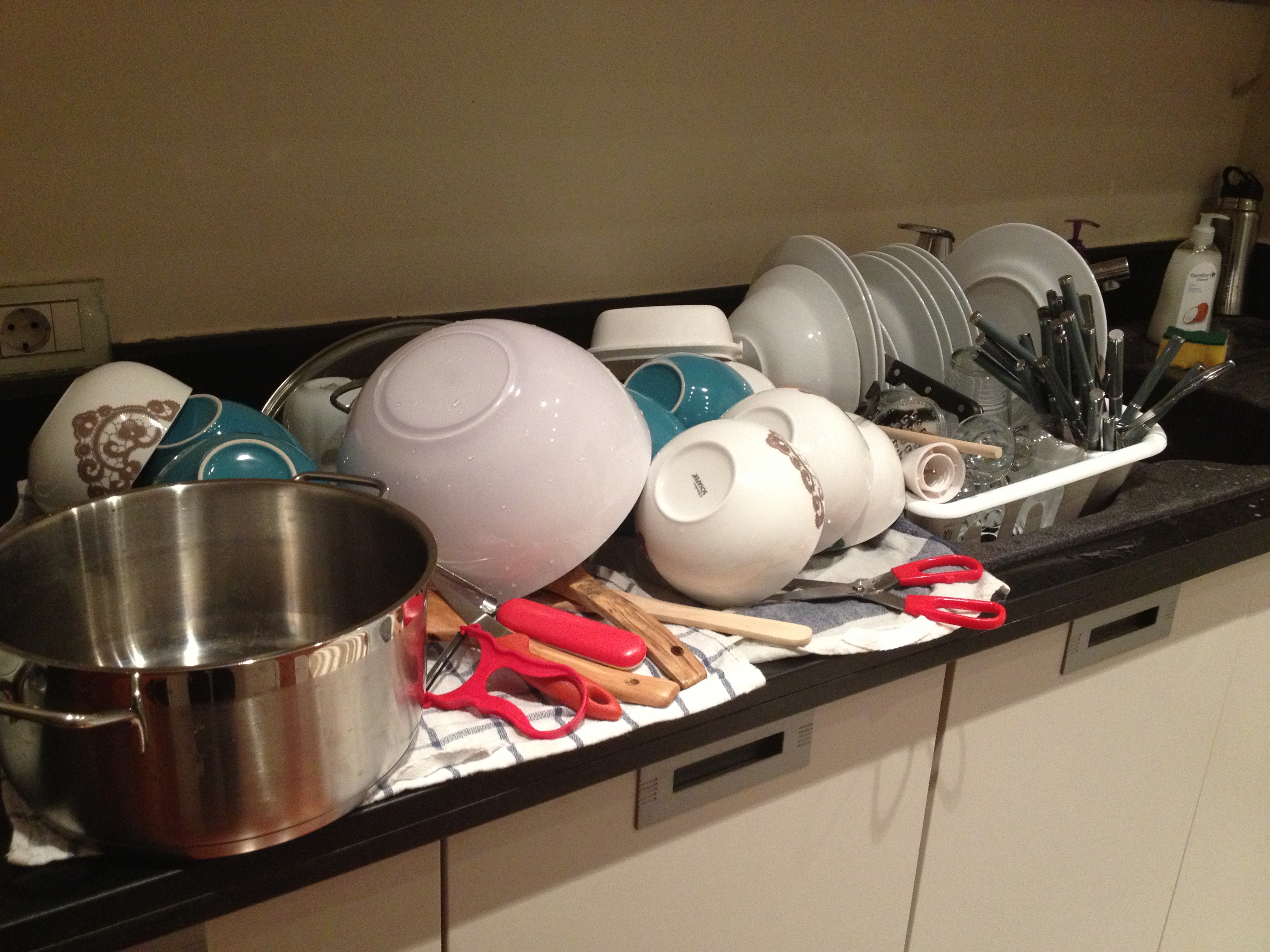 Anyways, I had the main ingredients translated and although it was a bit stressful in terms of just really not having a firm grasp on converting measurements into the metric system… it was a nice, relaxing time.  I am attaching a couple of photos. Forgot how many dishes are involved in these things!!!